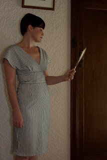 Then I saw Nichola's version. Talk about an incredibly stunning dress. Then I was lucky enough to be at Nichola's work, Tessuti Fabrics, when there was this lovely stripey remnant sitting on their remnant table.